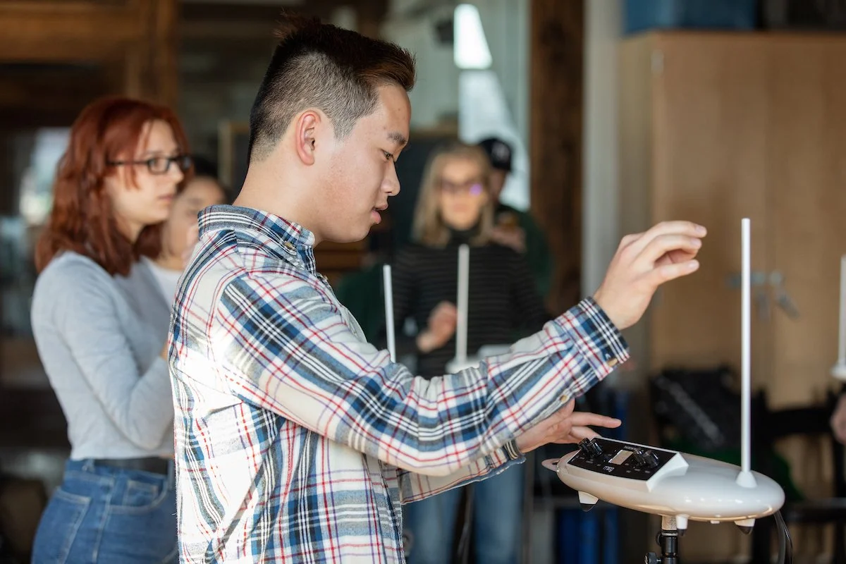 The NY Theremin Society has been offering educational programs worldwide for twenty years. Created by founder Dorit Chrysler, Theremin Workshops cater to both beginners and advanced players. Programs are available for adults and children starting at age 4. Workshops typically have ten participants, each with an instrument, focusing on motion to sound and learning techniques in a group setting.
